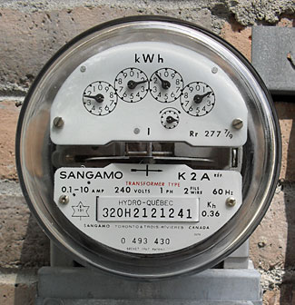 Finally, in case it remains still unclear to you, an explanation of the ‘power’ meter we showed at the top of this article. The rotating disk shows the rate of power flow – the faster it turns, the more power is flowing into your house. The dials are counting up the total energy supplied, and it is the dial reading each month or two which establishes the total energy you have consumed.